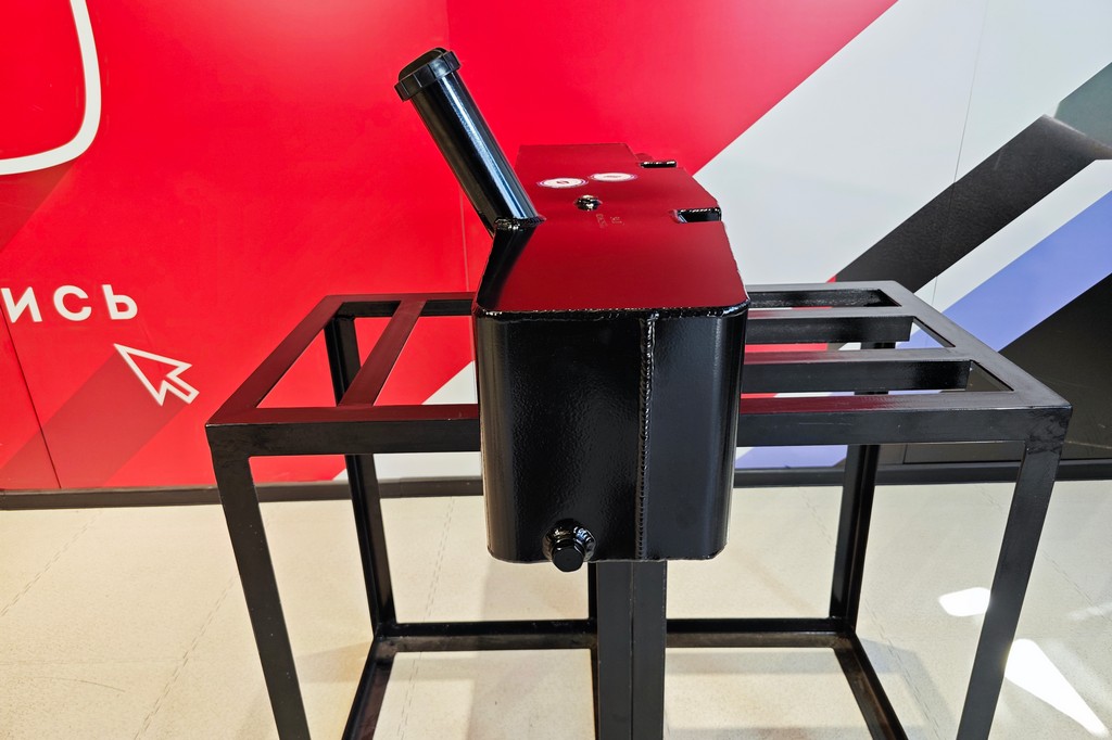 Все технологические отверстия на баке полностью соответствуют оригиналу - с родного бака можно будет перенести топливозаборник и датчик уровня топлива, воздушный клапан так же переносится с родного оригинального бака. В баке Хантер установлены 2 усиленные перегородки, которые обеспечивают более плавное перетекание топлива, а так же предотвращают гидроудары топлива об стенки топливного бака. Для ревизии топливной системы, в баке установлена сливная пробка М18х1,5.