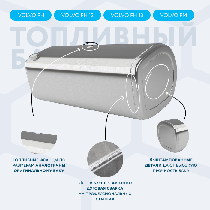 Наши алюминиевые баки изготовлены из алюминия АМг3 увеличенной толщины 2.5 мм. Однако мы можем изготовить топливный бак для вашего грузового авто из алюминия 3 мм под заказ. Обратите внимание! Заказная позиция требует увеличения стоимости и срока производства бака.